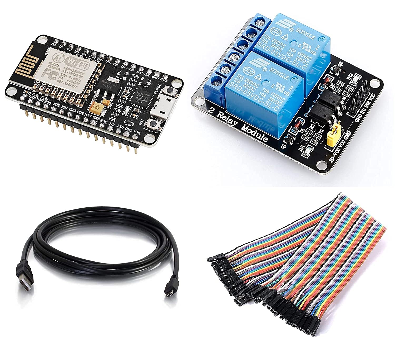 ESP8266 Nodemcu CP2102 Wifi based Basic Starter Kit with Micro USB Cable, 2 Channel relay Module, Female to Female Jumper wire AB0280