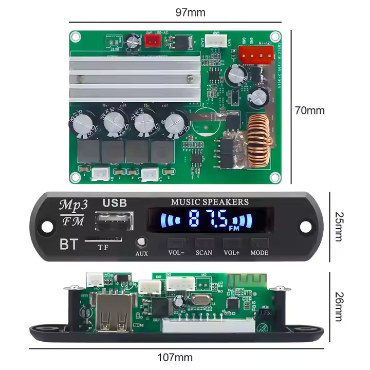 The VIRE 2.0 Channel 2×100W High Power Bluetooth Audio Amplifier is a compact yet powerful stereo amplifier board that utilizes the advanced TPA3116 digital amplifier chip to deliver clear, distortion-free sound with deep bass and rich treble, making it ideal for high-fidelity audio applications. Powered by a stable DC 12V input, this amplifier supports wireless Bluetooth connectivity for seamless audio streaming from smartphones, tablets, or laptops, and offers a mini form factor that fits effortlessly into DIY speaker projects, home audio systems, or custom entertainment setups, ensuring both performance and portability without compromising on sound quality.