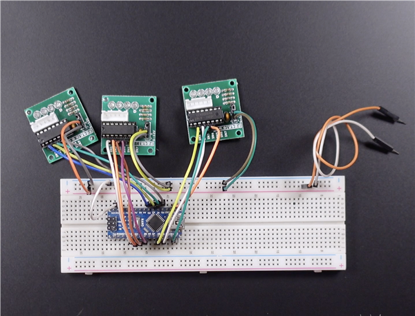 The circuit part of the project requires one Arduino Nano and three stepper motor drivers. You can build the project on a breadboard by following the shared circuit diagram,
