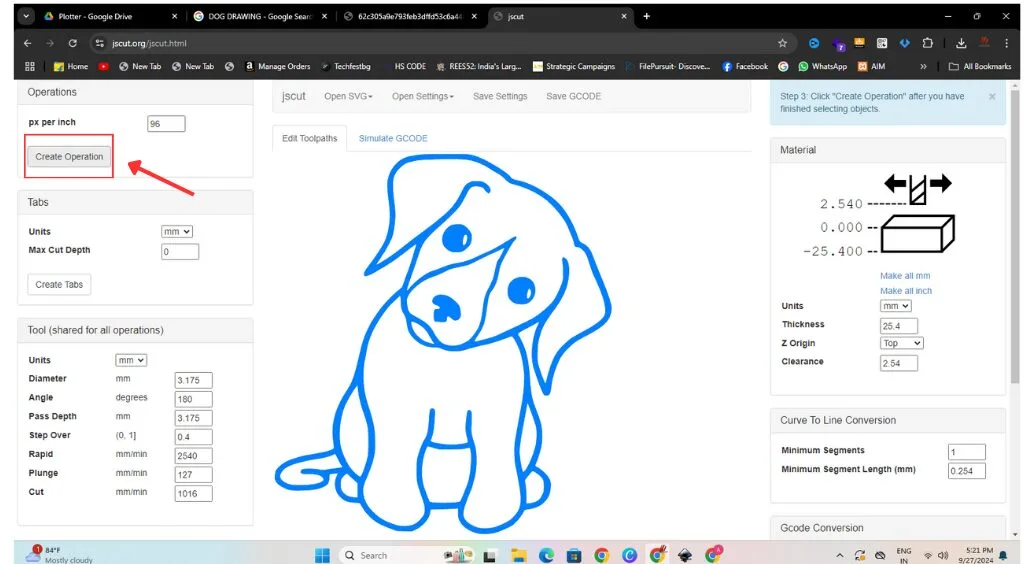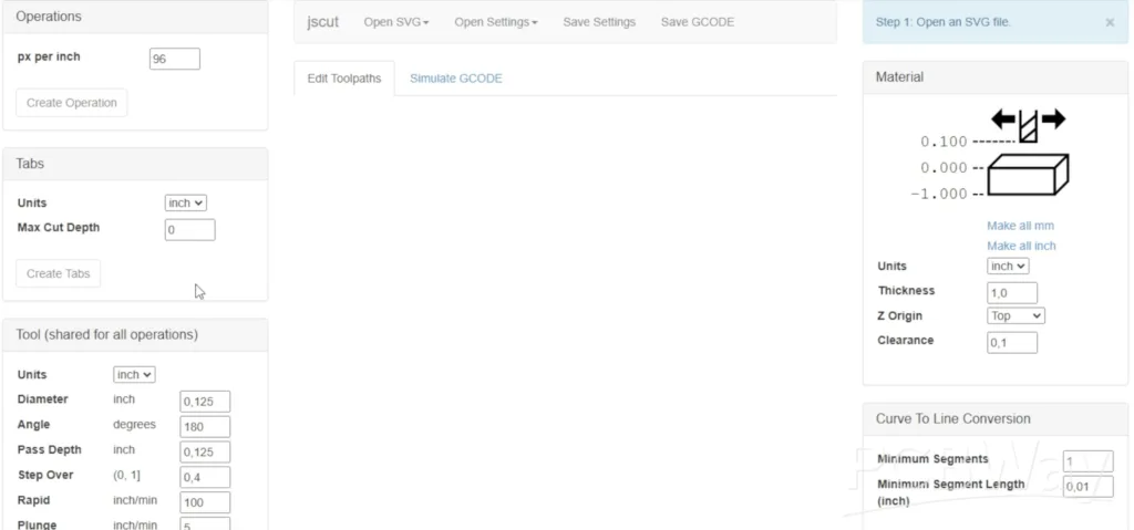 We will use the JS-Cut web tool to convert the vector file to G-code.