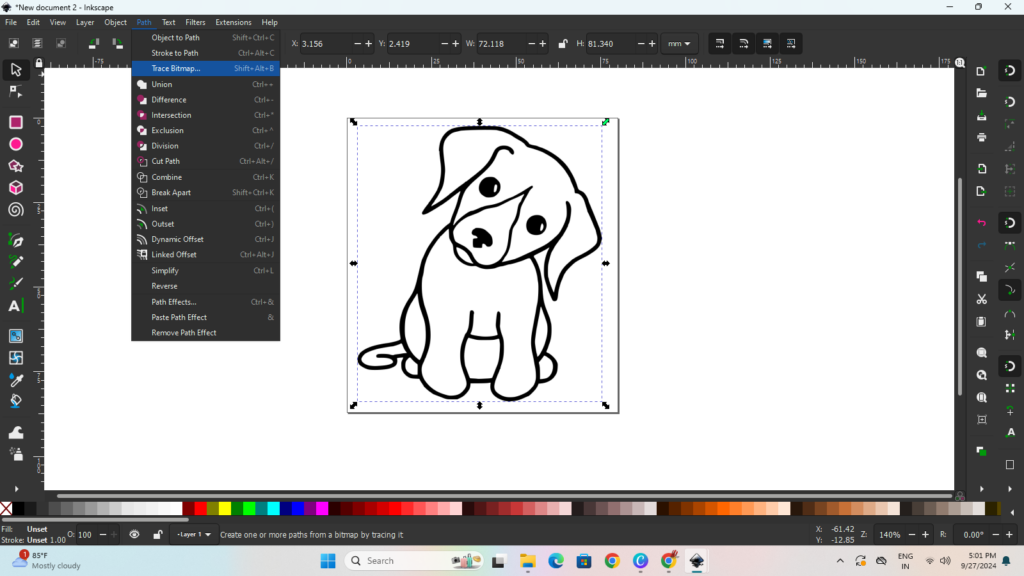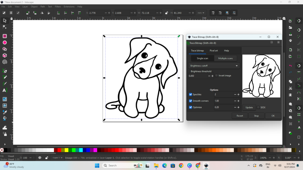 Then convert the image to vector and delete the previous inserted image. Now the vector image is ready for drawing, save the created image.